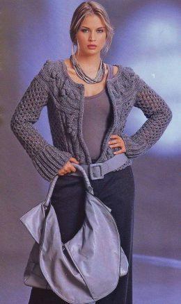 Жакет «Версаль» Размер:42 Вам потребуется: 600 г пряжи Noblesse от Pingouin (70% акрила, 30% шерсти) светло-серого цвета (№ 1817 - chuvisco); спицы Pingo...