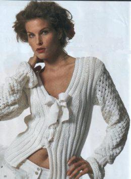 Белый жакет Размер: 38/40 (42/44) 46/48 (50/52) иностр. Вам потребуется: 450 (500) 550 (600) г пряжи Batik (66% хлопок, 34% полиамид, 64 м/50 г), 150(150...
