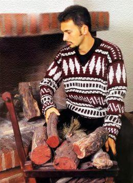 мужской пуловер с жаккардовым узором Размер: 50 Вам потребуется: 200 г тонкой акриловой пряжи серого цвета, 150 г пряжи бордового цвета и 110 г пряжи чер...