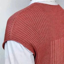 Этот жилет выполнен из мягкой пряжи с выразительным объемным узором "шишечки", создающим интересную фактурную поверхность. Модель с глубоким V-образным вырезом...