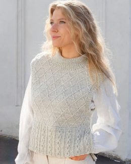 Этот стильный вязаный жилет украшен сложным узором из кос, который добавляет изделию элегантности и текстурности. Исторически узоры с косами использовались в ир...