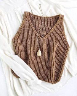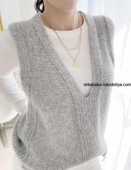 Посмотрите на этот стильный вязаный жилет с глубоким V-образным вырезом! Созданный вручную из мягкой пряжи, он идеально подходит для создания многослойных образ...