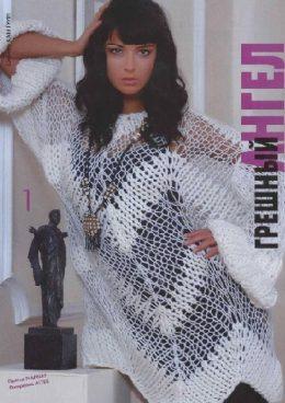 Пуловер вязаный спицами Размер 36-42 Вам нужно: 480 г белой прнжи «ВЕРОНА» (50% шерсти, 50% куртепя, 45 м/100 г) 140 г белой пряжи «ПЕРУДЖА» (80% шерсти,...