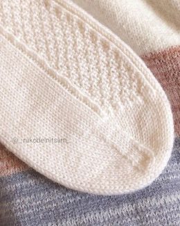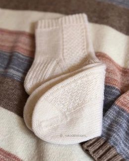 Начнем с едва заметной вязки на манжетах, которая плавно переходит в плотное плетение. Эти уютные носки созданы для максимального комфорта и тепла, с аккуратными узорами, подчёркивающими мастерство рукодельника.