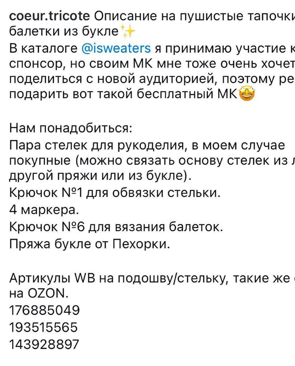 Описание на пушистые тапочки- балетки из букле 🤩🔥🙌🏻 Листайте карусельку ➡️ Автор описания: coeur.tricote ❤️