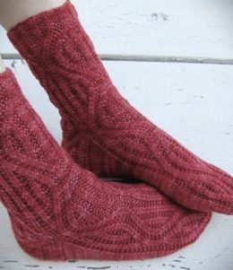 Эти уютные носки, связанные вручную, будто обнимают ваши ноги, даря нежное тепло и комфорт. Красивый узор, напоминающий плавные завитки, делает их особенными, а насыщенный красный цвет добавляет яркости в серые будни.