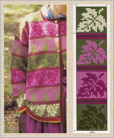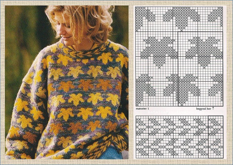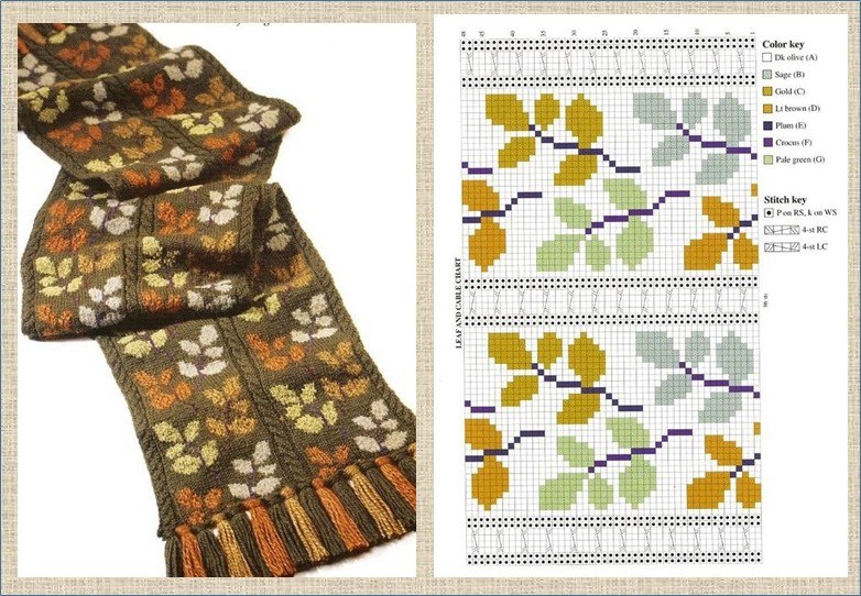 Теплый шерстяной шарф с ярким узором бабочек и листьев, выполненный в насыщенных осенних оттенках.