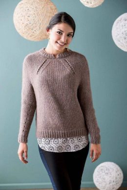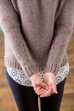 Этот свитер выделяется изящной ажурной отделкой на рукавах и передней части, придавая классическому фасону оригинальность и легкость. Мягкая пряжа обеспечивает комфорт и тепло, а аккуратная резинка по краям сохраняет форму изделия.