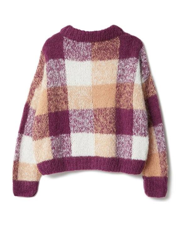 Этот уютный свитер выполнен из мягкой пушистой пряжи с выразительным узором в крупную клетку. Особое внимание уделено сочетанию насыщенного сливового, бежевого и белого цветов, которые создают стильный и гармоничный образ. Идеально подойдет для прохладных дней, добавляя яркости и комфорта в ваш гардероб.