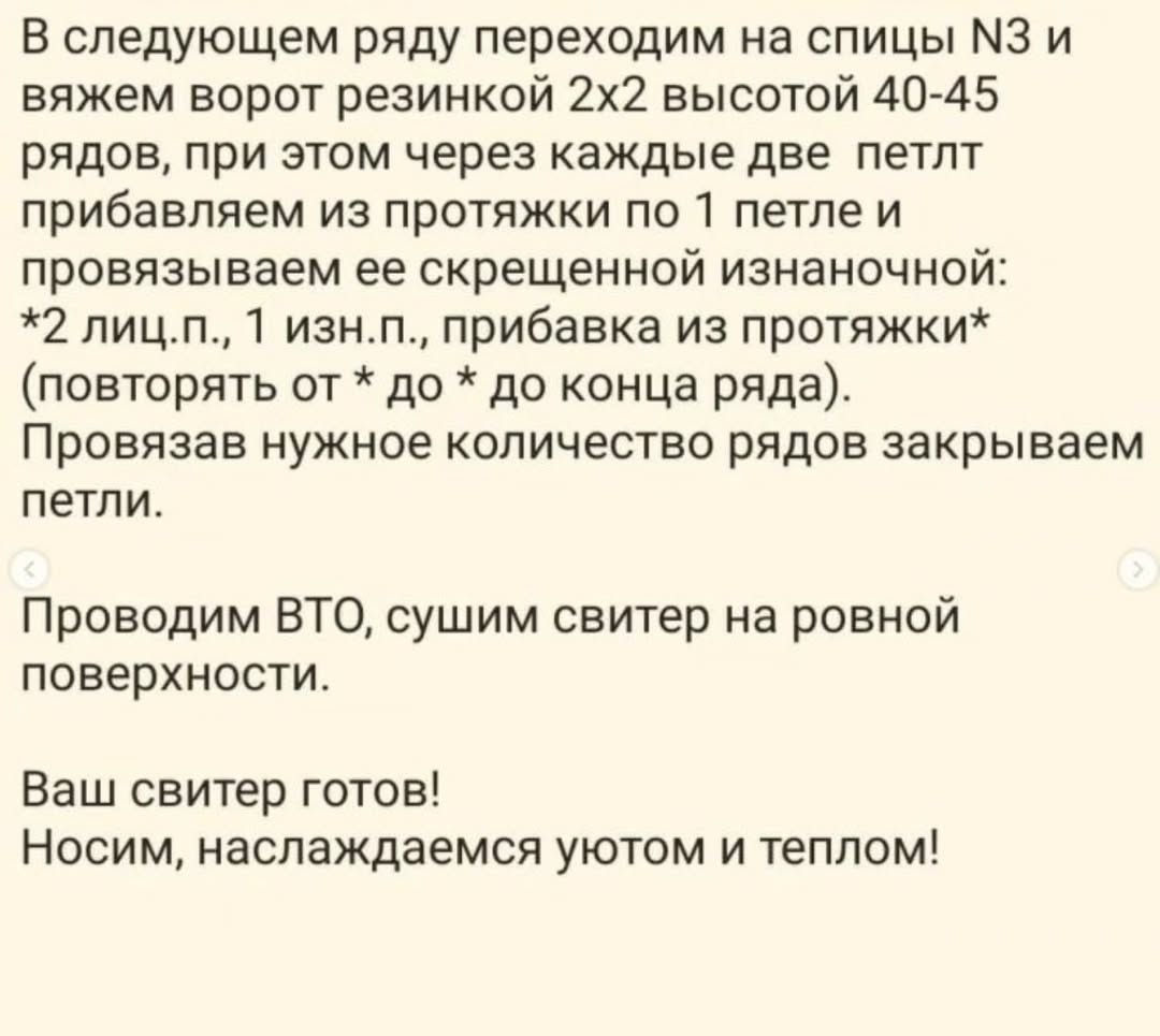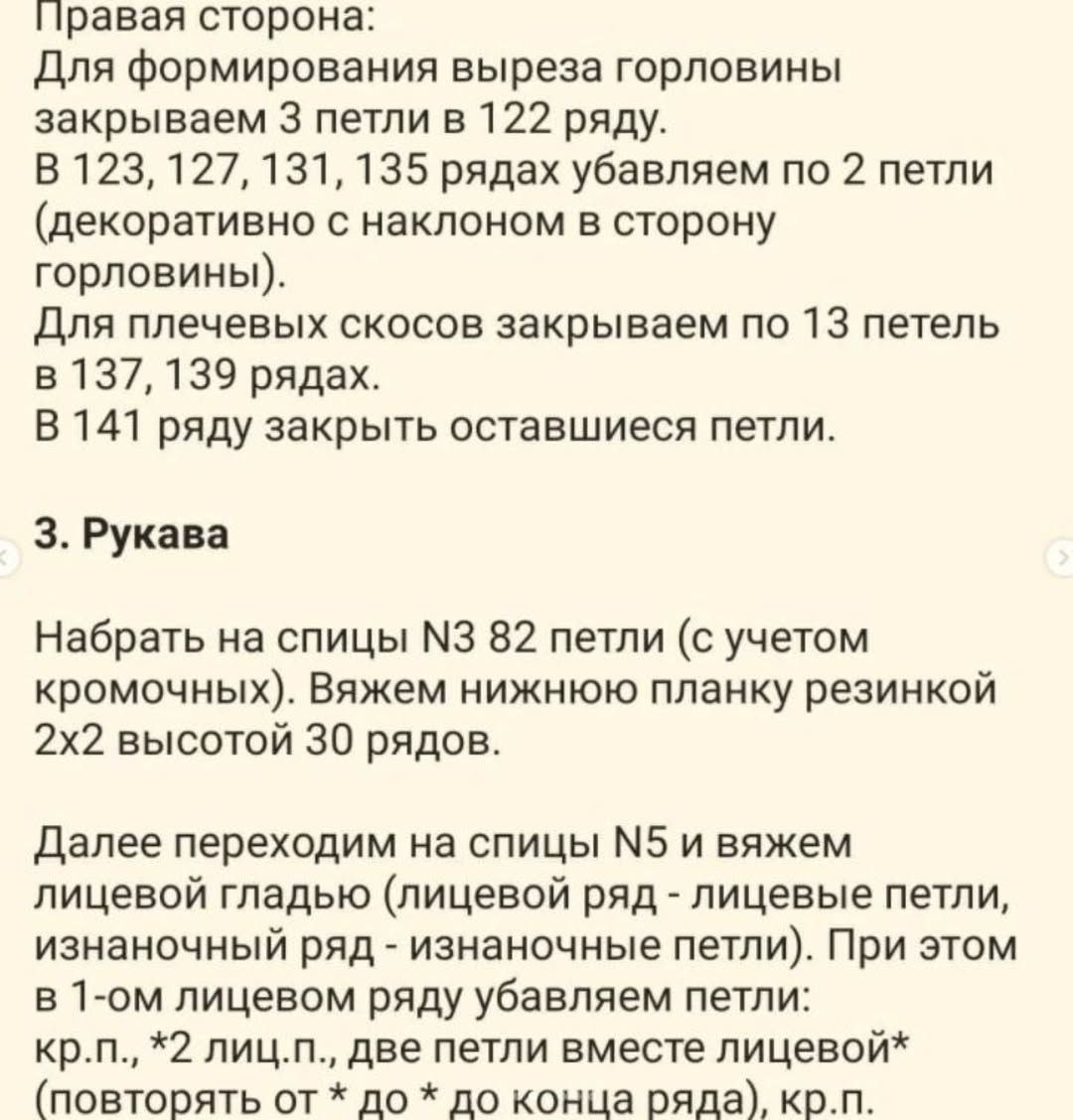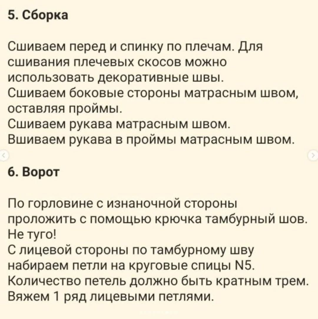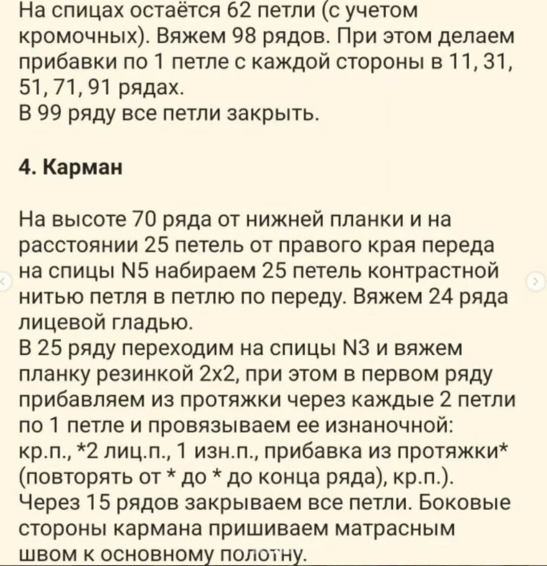 Свитер-оверсайз спицами Автор granata_knitting Для работы нам потребуется: ✔ Пряжа Кашемир пр-ва Китай (420м/50гр) — 9 моточков основного цвета. А также пряжа контрастного цвета для кармана ✔Спицы N3, N5 — 80см и 60см ✔Крючок N3 ✔Маркеры, игла для сшивания деталей, сантиметровая лента Свитер связан в две основных + одну дополнительную нить. Модель сшивная, каждая деталь вяжется отдельно. Плотность после ВТО 18п х 26р в 10см. Ширина готового изделия 63см. Длина по центру спинки от горловины 62см. Длина рукава от горловины 74см, от проймы 49см.