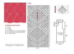 Топ выполнен спицами из мягкой пряжи с оригинальным листовым узором, который придает изделию легкость и воздушность. Отличается аккуратными боковыми вставками и...