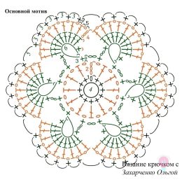 возд. а. пропустить 2 п.*. повторять от’ до *. 4 ст. с/и. 2-й р.: «по 1 ст. с/н в каждый из следующих 4 ст. с/н предыдущего ряда. 1 возд п. 1 ст. б/н в арку. 4 возд п.. 1 ст. б/н в следующую арку. 1 возд п.*. повторять от * до4 ст. с/н: 3-й р.:*по 1 ст. с/н в каждый из следующих 4 ст. с/н предыдущею ряда. 5 ст. с/н в арку», повторять от * до *. Основной узор 3.1-й р.: *1 ст. с/н, пропустить 2 п. 1 возд п. в следующую петлю вязать: 1 ст. с/к 1 воэд п., 1 ст. с/н, 1 возд а. 1 ст. с/н и 1 возд. пЛ повторять от * до *. 1 ст. с/н; 2-й и 3-й р.. в каждую петлю вязать по 1 ст. с/н и 1 возд. п.; 4-й р.: повторять раппорт с 1-го р. Плотность вязония: 24 п. и 11 р. =10 х 10 см.
