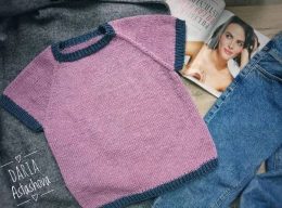 Бретели: на первых 25 п. левой полочки вязать основным узором 3 чередованием цветов:*3 р. коричневых. 3 р. бежевых. 3 р. оранжевых. 3 р. белых», повторять от’* до* . Начиная с 10-го р. убавлять с обеих сторон в каждом ряду 6 х 1 п. В 21-м р. обрезать и закрепить нить. Так же связать вторую бретель, набрав петли начиная от 10-й а правой полочки. Сборка: обвязать бретели, скосы пройм и верхний край спинки бежевой нитью 2 р. полуст. Нижний край топа обвязать коричневой нитью 1 р. полуст.