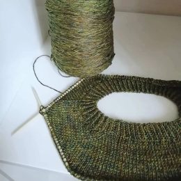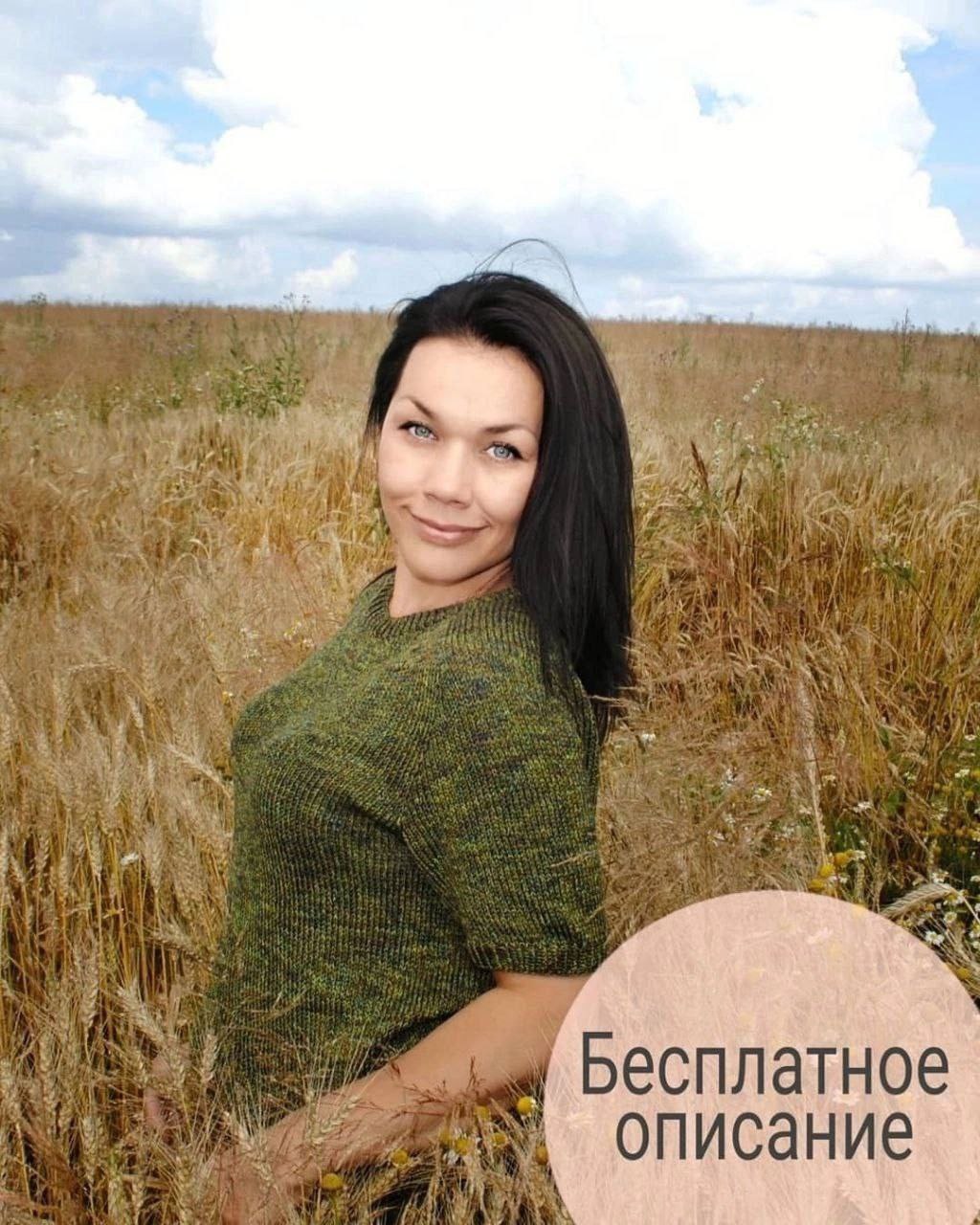 Уютный и теплый пуловер с короткими рукавами, выполненный спицами из мягкой меланжевой пряжи с интересной фактурой. Идеален для повседневной носки и сочетания с джинсами или юбками. Особенность модели — аккуратный резинчатый край и ровная гладь полотна, подчеркивающая форму.