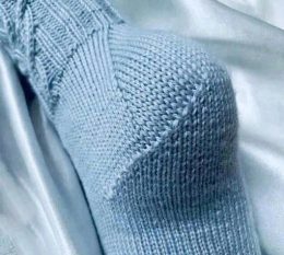 Она прекрасно садится на ногу, в нее можно красиво вписать узор носка, а вязать ее не скучно.