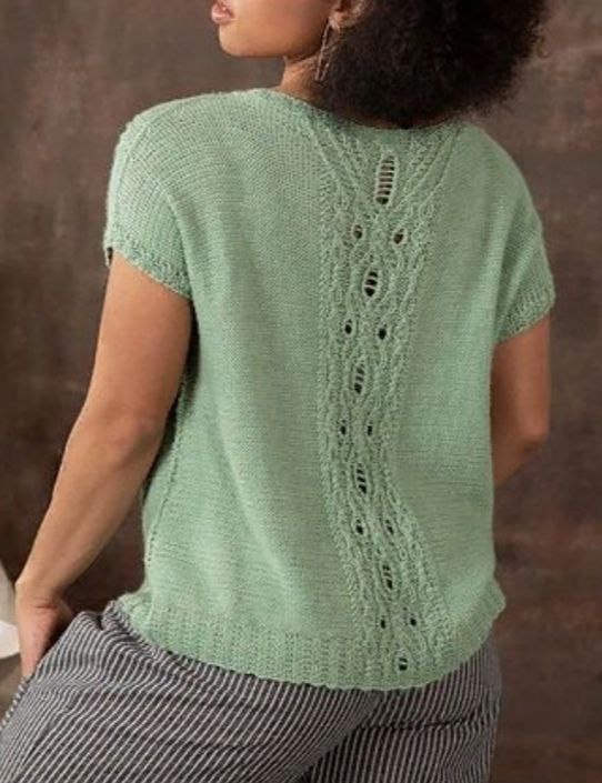 Тёплый и стильный свитер с изыскательным кружевным узором по центру, создающим эффектный визуальный акцент и добавляющим изящества образу.