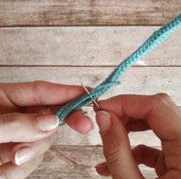 Оставить конец нити длиной 30-40 см для сшивания.