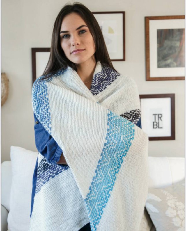 Уникальный вязаный шарф с ярким зигзагообразным узором и контрастными оттенками, создающими эффект объемных линий.