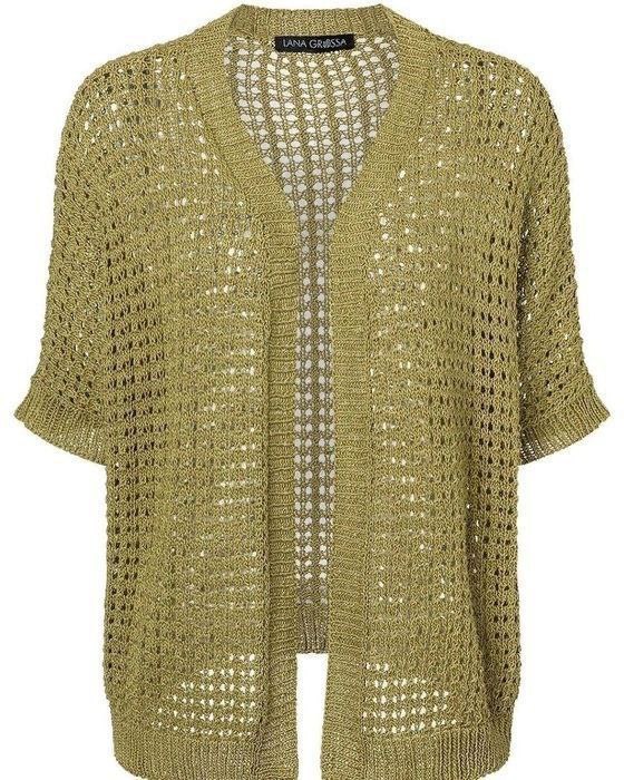 АЖУРНЫЙ ЛЕТНИЙ ЖАКЕТ СПИЦАМИ СЕТЧАТЫМ УЗОРОМ. Описание. в схеме узора только лицевые ряды показаны, все изнаночные вяжем просто изнаночными петлями ⠀ Жакет был предложен компанией Lana Grossa.⠀ ⠀ Для вязания жакета необходима пряжа с составом: хлопок, лен (можно добавление вискозы), метраж 120м/50г, спицы круговые № 3,5 (для резинки) и № 4,0 (для основного полотна).⠀ ⠀ Для размеров 42/44, 46/48, 50 потребуется 400 (450-500) г пряжи.⠀