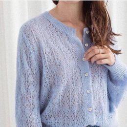 Очаровательный образ этого нежного свитера привлекает внимание своим ажурным узором и милыми пуговицами в форме сердечек. Лёгкий голубой оттенок и мягкая текстура делают его идеальным выбором для создания романтичного и комфортного стиля.