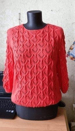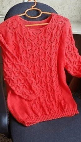 Этот свитер напоминает мне прохладные осенние вечера, когда я гуляла по парку, и листья под ногами шуршали, словно шепча свои истории. Вязанный узор в виде лист...