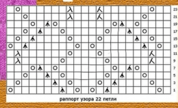 Вязаный образец с изящным плетением ромбов, создающим объем и текстуру, идеально подходит для декоративных деталей и стильных акцентов в изделиях. Узор спицами