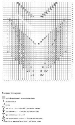 Первый узор — узор из листьев для нижней части джемпера. Он вяжется и в лицевых, и в изнаночных рядах