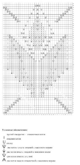 Второй узор — узор для верхней части переда и спинки. Узор вяжется также в каждом ряду, но здесь немного другие листья