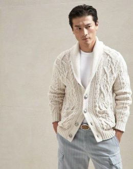 Этот вязаный кардиган, выполненный из мягкой пряжи, привносит уют в холодные зимние дни. Уникальная текстура и стильные пуговицы делают его идеальным выбором для любого гардероба.