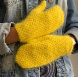 Эти яркие варежки, связанные спицами, привлекают внимание своим насыщенным жёлтым цветом и пушистой текстурой. Уникальная вязка создает эффект мягкости и тепла, идеально подходящий для холодных дней. Особый акцент сделан на аккуратном сочетании узора и ворса, что придаёт изделию не только стильный вид, но и дополнительный уют.