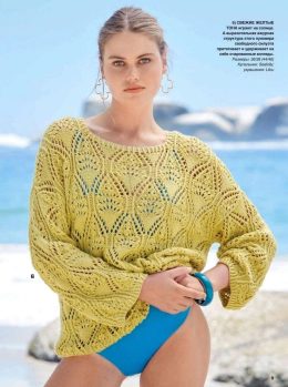 Этот легкий свитер с уникальным ажурным узором и мягкими пастельными оттенками идеально подойдет для прогулок у воды. Как вам сочетание нежных цветов и волнисто...