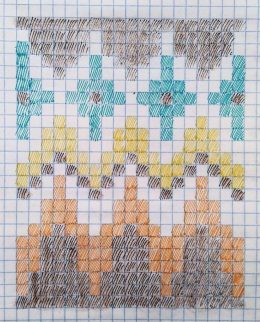 Эта яркая вязаная шапка с забавным помпоном наверняка привлечет внимание. Сочетание коричневого, оранжевого, белого и синего цветов создает эффектный зигзагообразный узор, который делает ее уникальной и стильной.