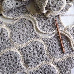 Пусть ваше творчество согревает душу! Этот вязанный плед из шестиугольных мотивов с кружевным узором и теплым серым оттенком создаст уют и добавит стиль в ваш интерьер.