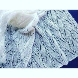 Элегантная вязаная спицами шаль с изящным узором в виде перьев, дополненная ажурной каймой. Уникальная форма и воздушная структура делают изделие легким и эффек...