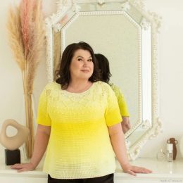 Здравствуйте, любители рукоделия! Представляем вам восхитительное летнее творение — футболку, связанную крючком. Этот эффектный наряд выполнен в ярком градиенте от насыщенного желтого до нежного лимонного оттенка. Фасон свободный и легкий, с изящным узором на кокетке, добавляющим изюминку. Отличный выбор для солнечных дней!