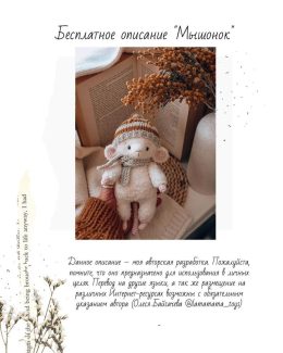 Очаровательная рукодельная мышка, выполненная из мягкой пряжи. На ней яркая оранжевая шапочка и уютный шарфик, что добавляет ей уюта и стиля. Мягкие пастельные оттенки и продуманные детали делают игрушку особенно милой и привлекательной.
