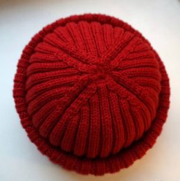 Яркая красная шапка с выразительным ребристым узором и аккуратным сбором сверху, создающая объем и текстуру. Идеальна для холодного сезона, сочетает стиль и тепло.