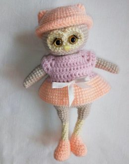 Вязаная игрушка Совуля-девчуля от Margo Saudade. Для совы на фотографии использованы : пряжа «Детская новинка» и акрил «Пехорка», глаза диаметром 1 см, накладные ресницы.