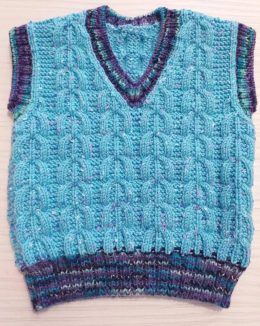Дорогой друг, перед тобой замечательная вязаная жилетка, которая согреет тебя и добавит яркости в любой день. Обрати внимание на выразительные косы и контрастную отделку на воротнике и рукавах, которые придают изделию особый шарм. Отличный выбор для тех, кто ценит комфорт и стиль!