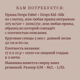 Эта стильная манишка от Drops Design вдохновляет сочетанием теплых осенних оттенков и мягкой текстуры пряжи. Особое внимание привлекают изящные ребристые узоры и уютный высокий воротник, создающие неповторимый комфорт и элегантность.