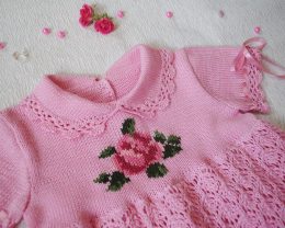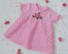 Это очаровательное розовое вязаное платье, украшенное тонкими цветочными мотивами, станет любимым нарядом вашей маленькой принцессы.