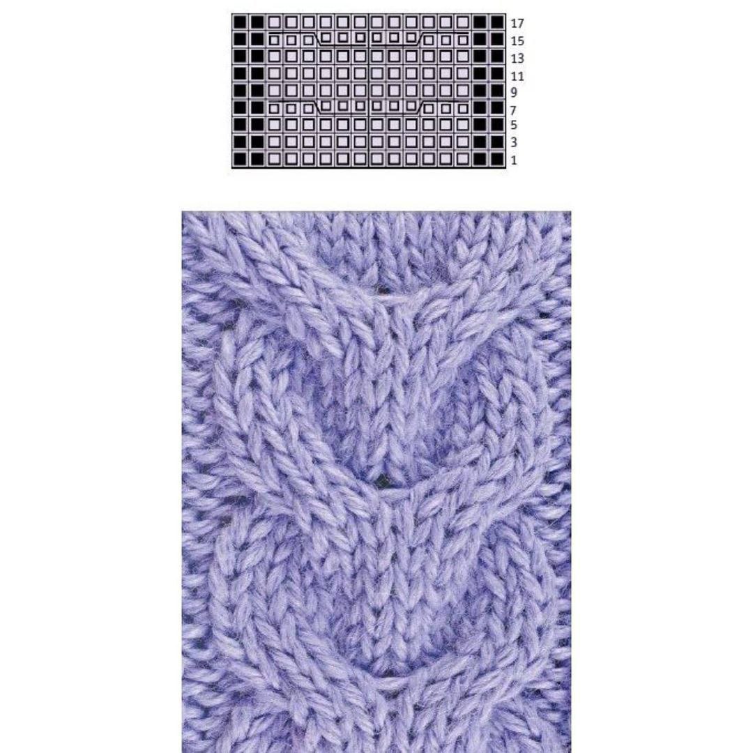 Я вяжу следующим образом: 1 кром, 3 изн, 8 лиц, 3 изн, 8 лиц, 3 изн и т.д., 1 кром. Далее из этих 8 лицевых будет коса (из 4 петель коса влево (2+2 п.), из 4 петель коса вправо (2+2 п). Раппорт 25 петель. Косу формирую в каждом 8 ряду, остальные ряды по рисунку. Описание: