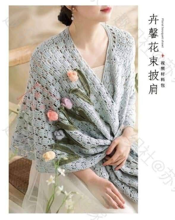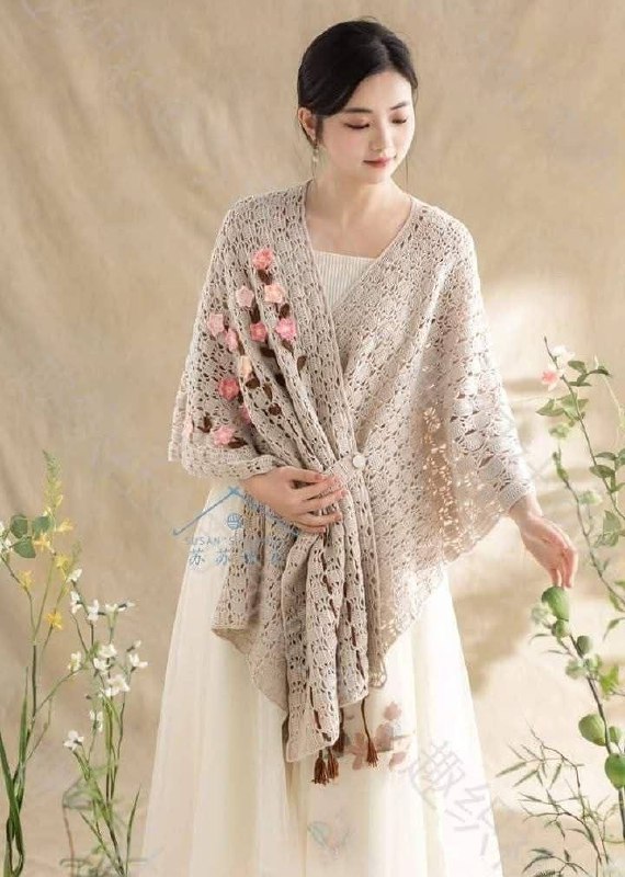 Вязаное пончо с цветочной вышивкой