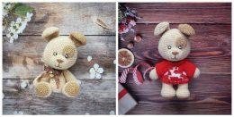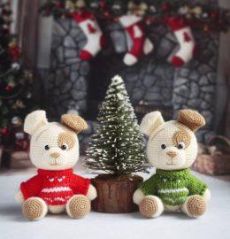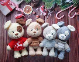 Предлагаем схему вязания собаки крючком, свитер связан спицами, описание вязания одежды автор не приводит.