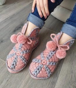 Схемы мотивов этих милых домашних тапочек