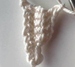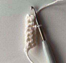 9) Продолжить вязать ножку. Для этого связать 3 вп и вернуться к седьмому ряду, связать за правые части петель седьмого ряда 8 сбн.