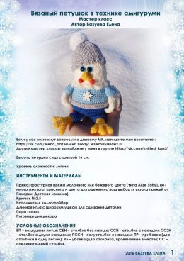 Вязаная игрушка петушок в шапке. Авторский мастер-класс от Елены Базуевой.