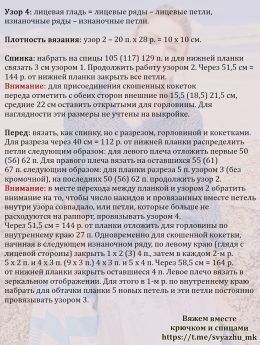 Нежная кофточка, связанная крючком из тонкой хлопковой пряжи с оригинальным узором из ромбовидных прорезей на лифе и рукавах. Идеально подходит для теплых дней,...