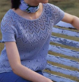 Мудрая мысль: «В каждой петле скрыта история, в каждом узоре — уникальность.» Этот изящный вязаный топ привлекает внимание ажурным узором, создающим легкость и воздушность. Особо выделяется сочетание прохладного голубого оттенка с элегантным шейным платком, которые вместе придают образу утонченность и стиль.