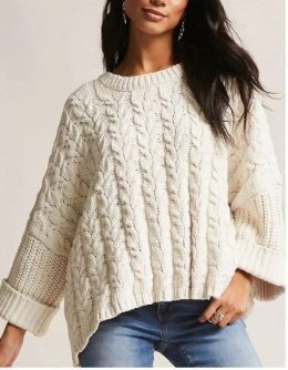 Этот уютный вязаный свитер цвета слоновой кости — воплощение комфорта и стиля. Изготовленный из мягкой пряжи, он украшен объемными косами, которые добавляют текстурности и шарма. Свободный крой и опущенные плечи создают расслабленный силуэт, идеально подходящий для прохладных дней. Длинные рукава с широкими манжетами придают изделию дополнительную элегантность, а нейтральный оттенок легко сочетается с любым гардеробом.